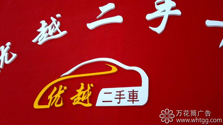 漳港優(yōu)越二手車,店面廣告牌底面采用鋁塑面板,正面加上LED平面發(fā)光字+PVC字,整體主色調(diào)采用紅色,字用紅色,給人感覺明顯。